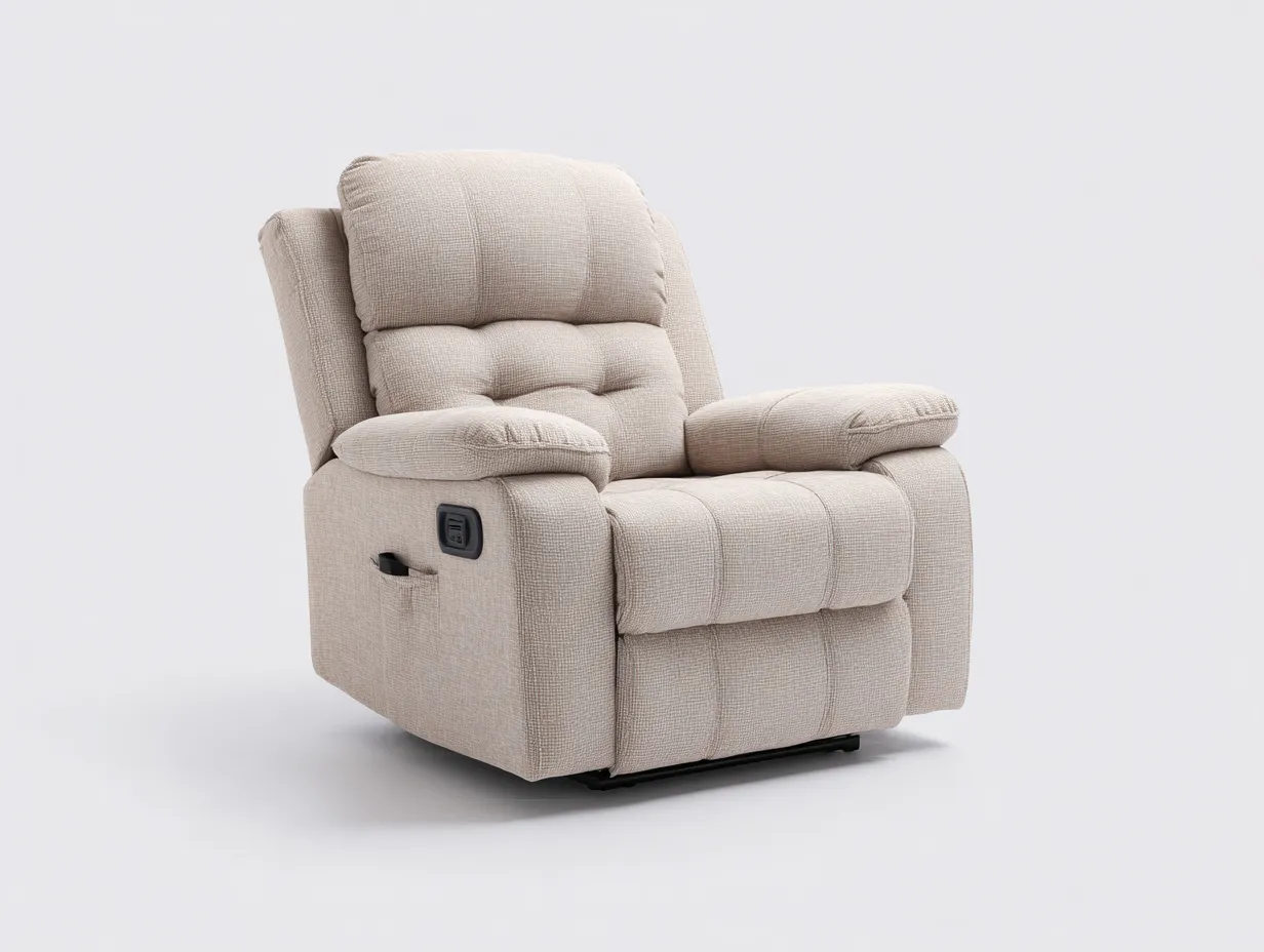 Funzione reclinabile manuale integrata per regolare facilmente la posizione. Braccioli imbottiti per un supporto confortevole. Linee morbide e stile moderno adatto a diversi ambienti abitativi.
